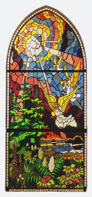 Clinton Conley, an artist who specializes in extraordinarily beautiful art, along with the artistry of Nina Augustin, designed the stained-glass window in our church sanctuary. Installed in 2002, the scene captures many recognizable aspects of the exquisite Northern Oregon Coast near Tillamook.